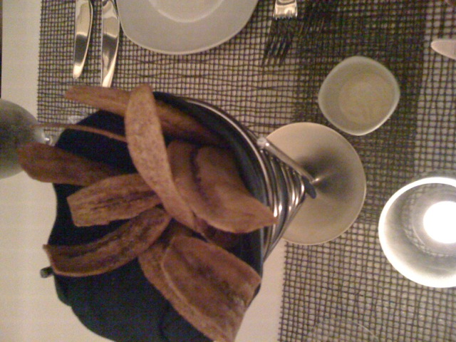 Bread: Instead of bread the waitress brought over a tall basket of dried plantains with an aioli dipping sauce. It’s always refreshing to see something new and different to start off the meal. The aioli was a delicious compliment to the thin & crispy banana imposter.