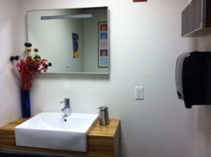 Bathroom: The restroom isn’t exactly located in the restaurant; you have to walk through the entryway and down a long hall to the back of the building. Each door has a funky silhouette of a lady and gentleman. The interior was clean but there wasn’t any toilet paper in the lady’s room both times I went (I sure did sneak into the men’s room to steal some). They could use some more decorations but the flowers were nice.