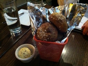 Bread: Four pretzel bread rolls were wrapped in tin foil and served in a red metal basket with a side of mustard butter. The bread was warm, salted, and so excellent with that infused butter. One of the best bread baskets I’ve had in a while!