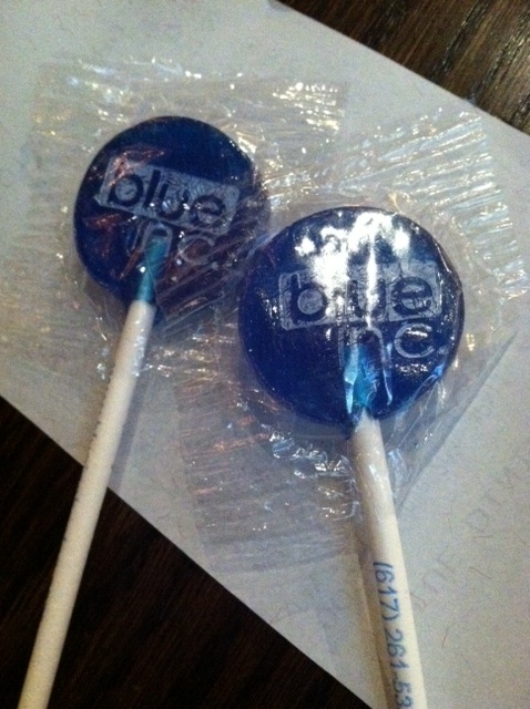 Overall: My parents, Matt & I all really enjoyed our evening; every bit of food we tasted was excellent from mom’s Cabernet Braised Short Ribs to dad’s Hand Rolled Sage Gnocci. I’d love to go back for their Grilled Salmon dish, and even the Pan Roasted Natural Statler Chicken Breast sounds amazing (rosemary polenta, yes please!). The prices weren’t outrageous with entrees topping out at $26, and the apps and bar menu ranging from $5-$19. Blue Inc. certainly makes a statement, esp. with its pretzel bread and blue lollipops they give out with the check. It’s a small interior but has a lot of flavor and sass; I can’t wait to go back!