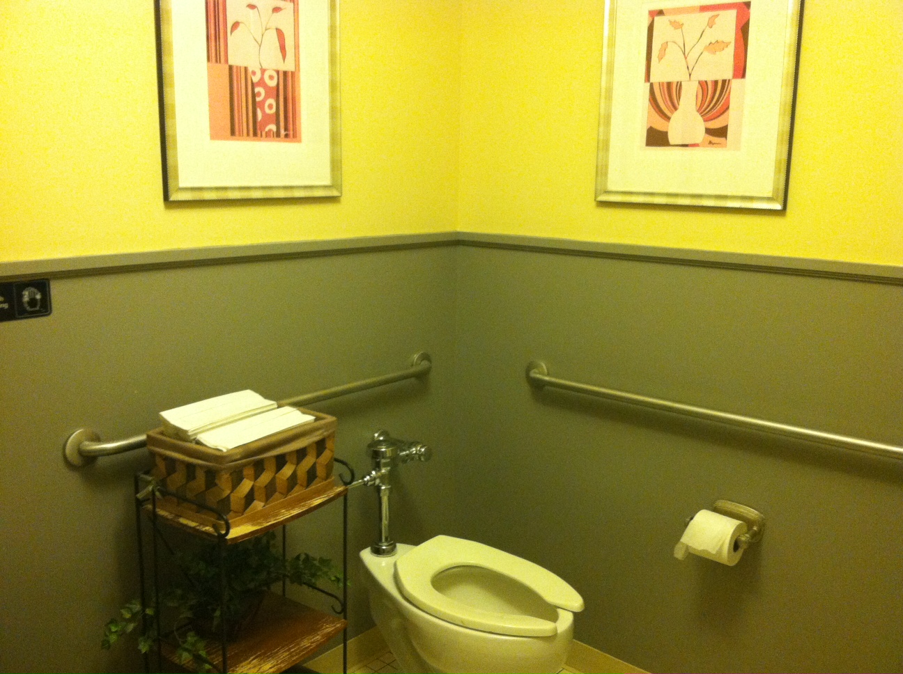 Bathroom: The bathroom was clean but a little bare. The only character was the wooden shelf and wicker basket holding the paper towels.
