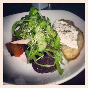 Roasted Local Beets & Burrata Salad: fig & caramelized shallot vinaigrette