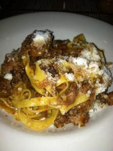 Four warm dates came stick side up, drizzled with a balsamic reduction. I’m not a bacon fan but I forced myself to try a bite without undressing the date. Fortunately the strong bacon flavor wasn’t as prominent as the sweetness of the date and pungent gorgonzola. The Phantom did not steer us wrong!
