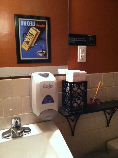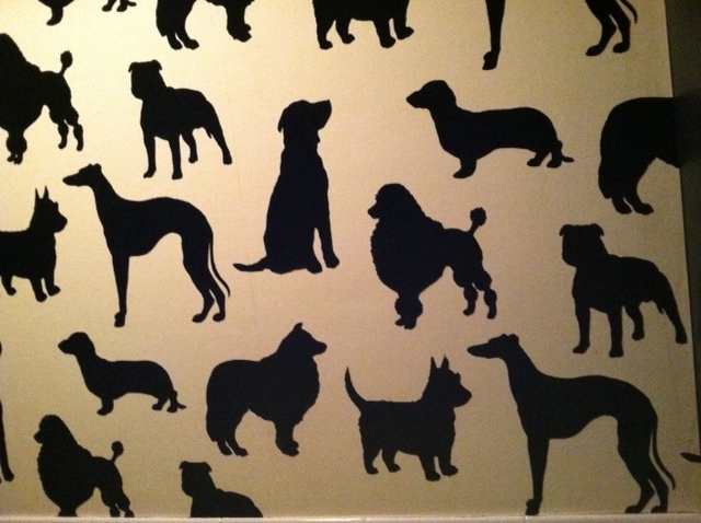 Bathroom: The restroom was small but cute; the wallpaper is felt silhouettes of different breeds of pooches, like a children’s touch & feel book!