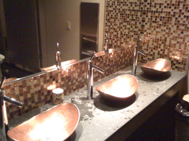 Bathroom: The door to the women’s room is marked “LADIES” with wooden letter blocks you might find in a pre-school. The inside is narrow and small but I liked the painted walls and tiled mirror.